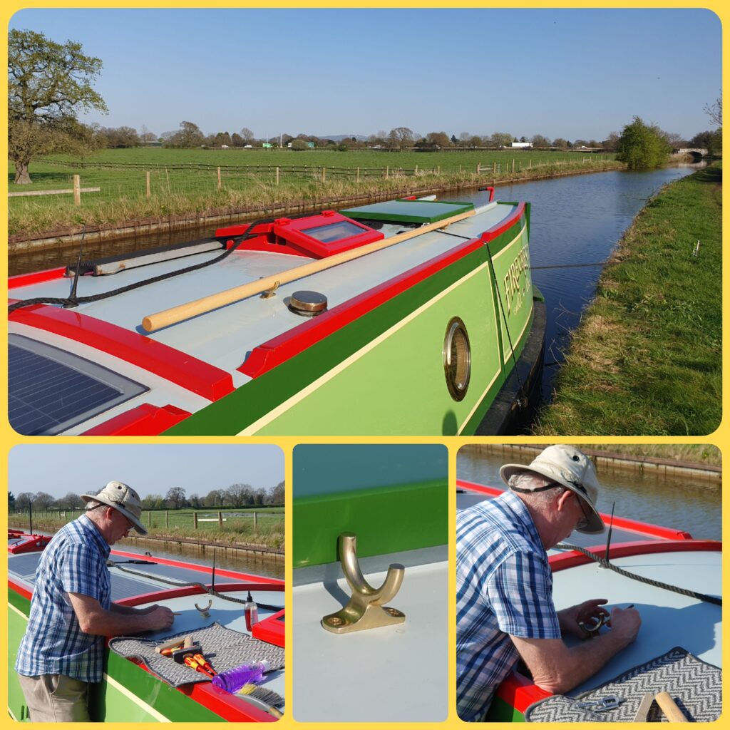 Eric decided it was time to screw the new pole support onto the roof – only a year after our repaint.